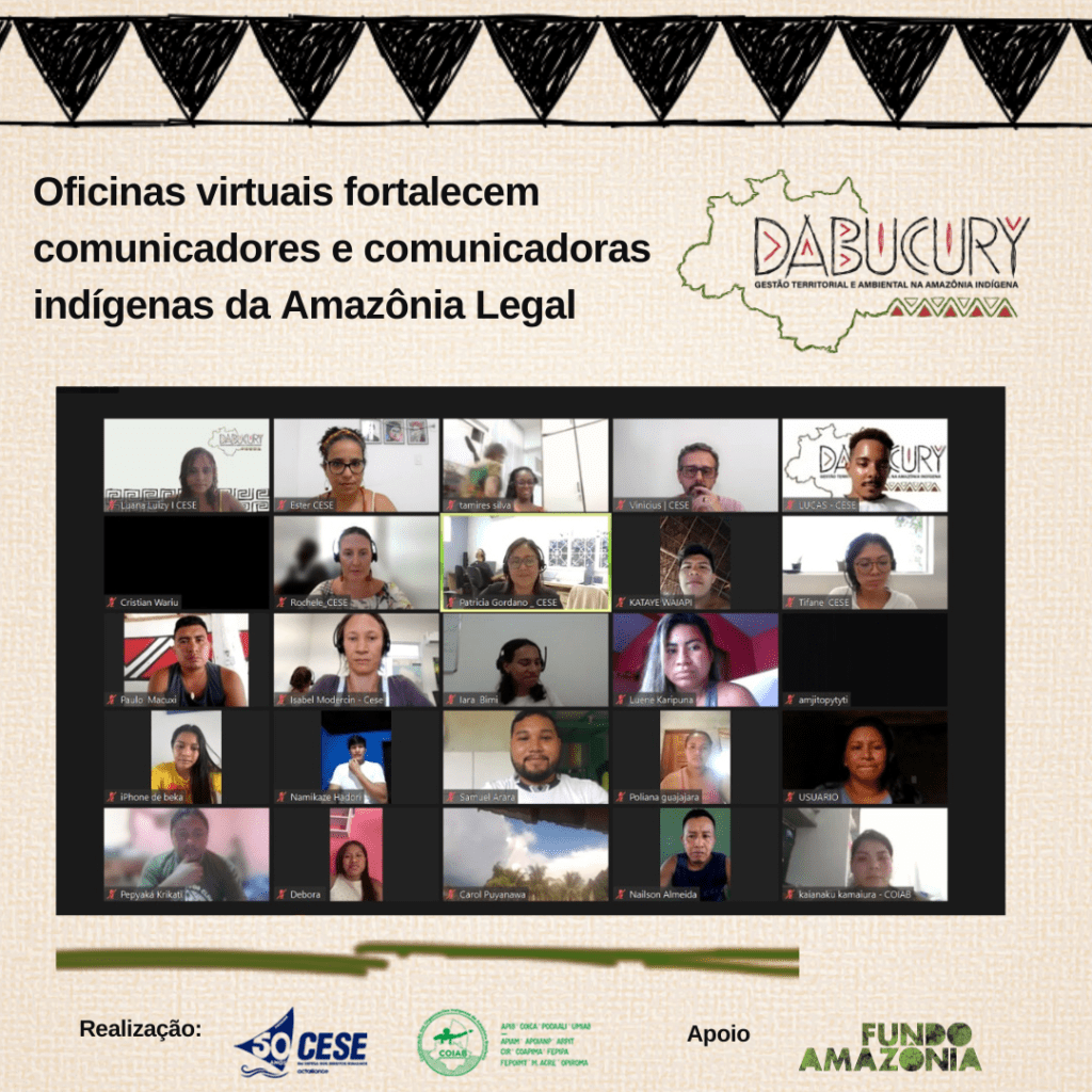 Este ciclo de oficinas é parte do projeto “Dabucury: Gestão Territorial e Ambiental na Amazônia Indígena”, uma iniciativa da CESE e da COIAB, com apoio do Fundo Amazônia/BNDES, destinada a apoiar projetos para Organizações Indígenas da Amazônia Indígena, com foco na implementação da Política Nacional de Gestão Ambiental e Territorial Indígena (PNGATI).